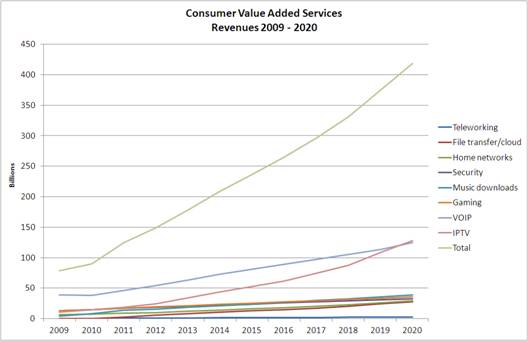 Consumer value added services are set to triple from $125 billion worldwide in 2011, to $420 billion in 2020. This was the predication made at CommunicAsia 2012 by Oliver Johnson, CEO of Point Topic, the leading industry analyst firm for global broadband statistics, information and reports.